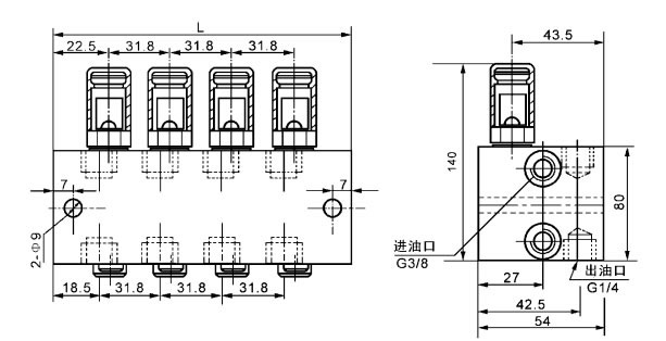 一、使用條件 VSL-KR型雙線分配器上下面均有給油口,分配器活塞正反向動作時分別從上面和下面的給油口排出潤滑脂;在相應(yīng)上、下給油口內(nèi)設(shè)有合二為一的排油結(jié)構(gòu),要改變奇數(shù)出油,只需將孔內(nèi)的螺釘擰出即可。還可以從指示桿的動作直接觀察分配器的工作情況,同時還可以通過調(diào)整螺釘在規(guī)定范圍內(nèi)調(diào)整各出油口的給油量。 該型分配器適用于公稱壓力為40MPa的雙線式干油集中潤滑系統(tǒng)中,在兩條供油主管交替的供油壓力作用下,直接由供油壓力控制活塞動作給油,完成向潤滑點定量分配潤滑脂的功能。