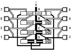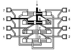 這時(shí)活塞B至D從左側(cè)向右側(cè)運(yùn)動(dòng),按以上相反方向順序動(dòng)作完成一個(gè)周期循環(huán)并可重新開(kāi)始一個(gè)新的循環(huán)。