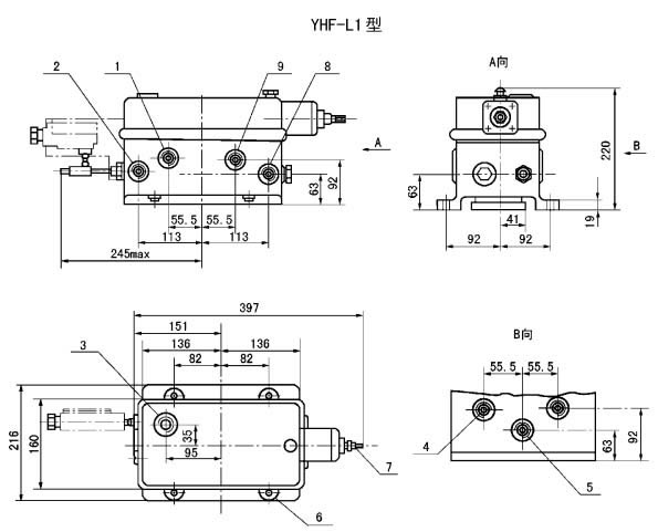 YHF-L1型閥與流量585mL/min的泵相配,安裝于底板上。YHF-L2型閥與流量60和195mL/min的泵相配,安裝于泵體上。
