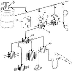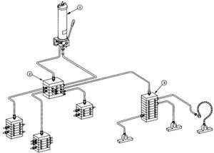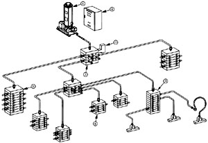 3、電動潤滑泵方式 由于裝有壓力開關(guān),低油位開關(guān),循環(huán)開關(guān)等報警裝置,依靠電控箱,就能實現(xiàn)完全自動化。 排油壓力為20MPa,排油量根據(jù)設(shè)計選用確定,這種方式廣泛應(yīng)用于各種機械設(shè)備中。 電動潤滑泵包括單線多點泵。 4、油桶蓋上裝泵方式 將泵本體直接裝在油桶蓋板上,故安裝方便,在塵埃多的場合非常適合,由于沒有必要將潤滑油從油桶移到油泵,故不會由于塵埃使泵、分配器、軸承受損。 驅(qū)動方式有電動和氣動二種,排出油壓最高可達20MPa。 這種方式特別適合大型機械、高爐、軋機等場合使用。