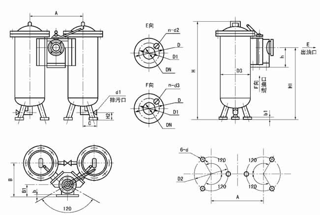 SLQ-32,SLQ-40雙筒網(wǎng)式過濾器(整體式) DN≥50的SLQ型雙筒網(wǎng)式過濾器(組合式) |