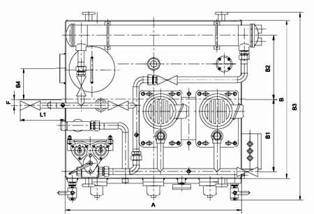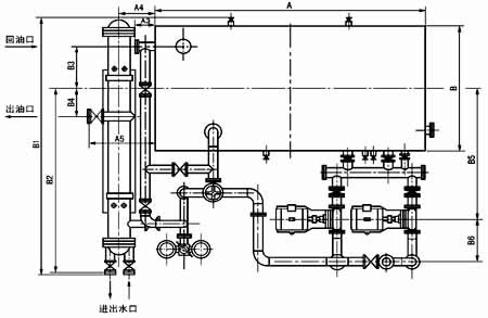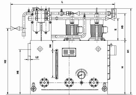 ≥250L/min稀油站,采用蒸汽加熱油箱中的潤(rùn)滑油,儀表盤尚多一檢測(cè)冷卻器進(jìn)出水管壓差的儀表,其主要部件均另外裝于基礎(chǔ)上;而≤125L/min稀油站的全部部件都裝在油箱上,為整體式結(jié)構(gòu)。 |