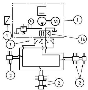 液壓換向閥 1a 具有切換兩條供油主管和控制供油主管末端的壓力的功能,當供油的主管的末端壓力達到液壓換向閥的設定壓力,液壓換向閥換向,并向電控柜發(fā)送信號,潤滑泵①停止,系統(tǒng)再次工作,從另一條主油管供油。