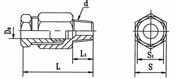 標(biāo)記示例:管子外徑D0為6 螺紋d為R1/8的直角管接頭;直角管接頭6-R1/8 ZY433.1.00