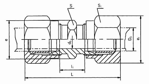公稱壓力J級(jí),管子外徑D0為14mm的卡套式直通管接頭: