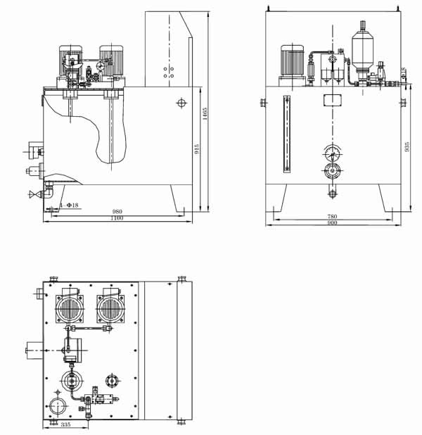 該站主要由油箱(帶電加熱器、液位計、電接點溫度計、空氣濾清器、液位控制器)、兩臺高壓油泵裝置(一備一用)、溢流閥、二位二通電磁閥、蓄能器、壓力控制器、過濾器、單向閥、壓力表等和PLC電氣控制箱組成。在電動機的牽引下油泵工作,從油箱內(nèi)吸入潤滑油加壓排出,途徑單向閥、過濾器、蓄能器后向系統(tǒng)主管線供送。